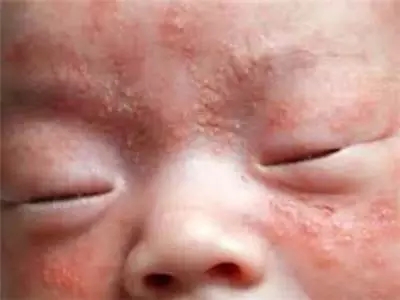表現(xiàn)為皮膚潮紅,小斑丘疹上溢出淡黃色脂性液體覆蓋在皮疹上,以后結成較厚的黃色痂皮,不易除去,以頭頂及眉際、鼻旁、耳后多見,但是癢感不太明顯。